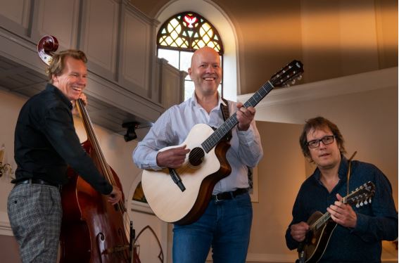 Groningse teksten en ook Engelstalige nummers. Dit alles met akoestische instrumenten en een humorvolle en